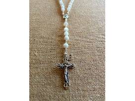 7Custom made moonstone rosary with sterling silver. Using almost translucent moonstone and sterling silver beads, crucifix, and medal - made for you or to give as a treasured gift - with owner's initials inscribed on the medal (optional). Just beautiful!