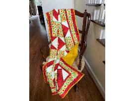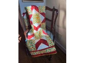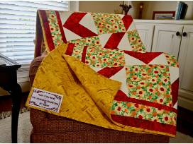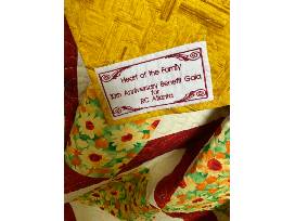 A custom made reminder of this year's 10th anniversary RC Gala. The red, yellow, and green colors of the quilt reflect the Gala's Heart of the Family Logo. The quilt is finished with a beautiful custom label of "Heart of the Family 10th Anniversary Benefit Gala for RC Atlanta."