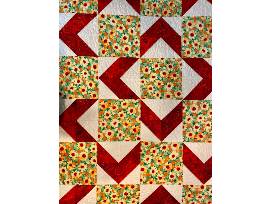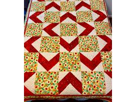 This lovely quilt measures 60" by 80" and fits a twin bed or can be used as a throw on a rocker, sofa, or armchair. It is all cotton for a soft feel.