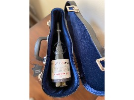 Genuine Leather Violin Wine Case with 2017 Les Hauts DE Barville Chatteauneuf du Pape