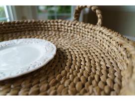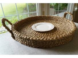 Large Pottery Barn Rattan Serving Tray. Impressive, 28" diameter extra large serving tray with handles. Looks elegant for indoor or outdoor dining displays.