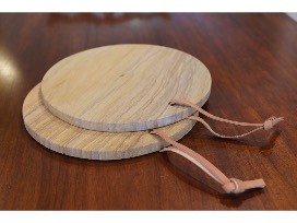 Very unique and hard to find pair of natural Sandstone serving boards with leather straps. Use these eco-friendly, durable boards individually or together to create appetizer stations for gatherings.