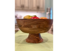 Natural Wood Serving Pedestal Bowl. This natural grain wood bowl would be lovely on a kitchen island or table full of beautiful fruit or decorative items. Measures 7"H X 11"H.