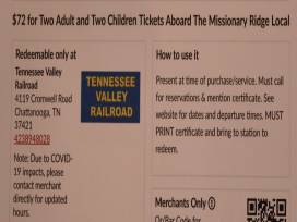 8 train tickets on the Tennessee Valley Railroad around Chattanooga (4 adults and 4 children).