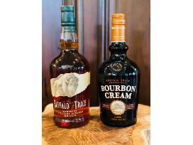 Bottle of Buffalo Trace Bourbon & Bottle of sweet Buffalo Trace Cream. This deep amber whiskey has a complex aroma of vanilla, mint and molasses. Pleasantly sweet to the taste with notes of brown sugar and spice that give way to oak, toffee, dark fruit and anise - and finishes long and smooth. Bottle of Buffalo Trace Bourbon Cream, a sweet liqueur served on the rocks, over ice cream, or in coffee. Try them all! Each bottle is 750 ml.