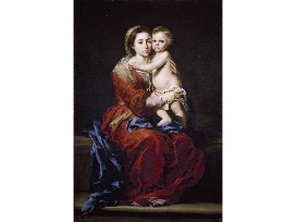 Murillo made several fine paintings of one of the most popular of Catholic religious works, showing the Virgin Mary with the infant Jesus, when his backgrounds remained very dark.