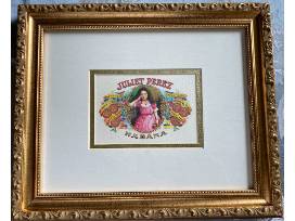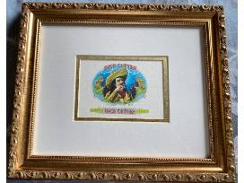 Authentic Cuban Cigar Box Lids framed perfectly in muted gold and museum-quality glass. Includes Juliet Perez, El Gaurdo, Aristocrat, and Dick Custer. Each measures 10"X12"
