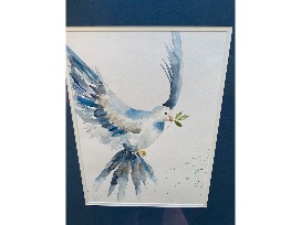 Outpouring of the Holy Spirit is a beautiful original watercolor painted by Gaetane Auger, a Consecrated Woman of Regnum Christi. Painting brings her joy, as she participates in God's creative power and uses her talent to give Him glory. Every glance at this painting can be a prompt in your home to call upon the presence of the Holy Spirit. This painting is the first that Gaetane has consented to sell. Will you be the proud owner of this meaningful painting? It comes with a custom matte and frame, museum-quality glass, and signed by the artist.