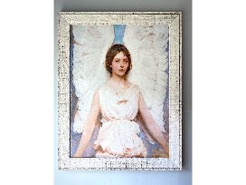 Angel by Thayer on canvas. 24"X32" without the frame. With the custom solid-wood frame the piece measures 30" x 38".