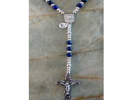 9Custom made blue lapis rosary with sterling silver. Using vibrant lapis and sterling silver beads, crucifix, and medal - made for you or to give as a treasured gift - with owner's initials inscribed on the medal (optional). Stunning!