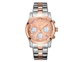 - Conveying time with utmost sophistication, this JBW series allows you to discover truly classic style. The dial is bejeweled with 21 diamonds positioned three on each indicator on the left side and one on each indicator on the right side of the dial. This unique timepiece features a 38-millimeter two-tone stainless steel case with a rose gold bezel. The two-tone stainless steel link bracelet with rose gold accents in the middle of the links makes this timepiece stylishly classic.