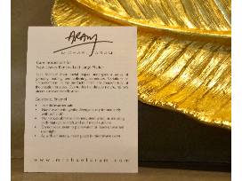 You will love this Michael Aram goldtone, enamel banana leaf large platter. Each Aram piece is individually crafted so that no two pieces are exactly alike This piece is stunning!