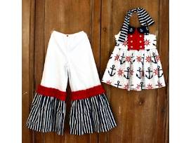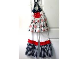 Nautical tie top and pants with ruffles. Size 6-7.