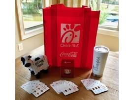 20 oz. stainless steel tumbler, Christmas tree ornament, plush cow,