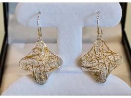 A beautiful pair of sterling silver vermeil scroll design earrings for pierced ears.