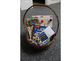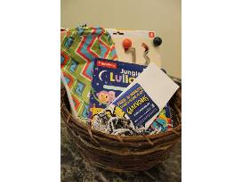 Let's play! This basket full of goodies is sure to bring hours of fun for the whole family with five 30-minute Gameworks video play passes, children's toys, a Jungle lullaby book, mind-building puzzles and bibs.