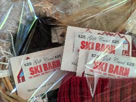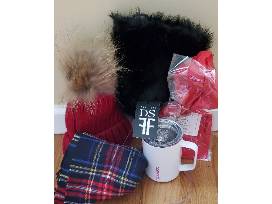 $50 Bungalow Road gift card, ice scraper, pompom hat, travel mug, scarf and four (4) $25 gift cards to Ski Barn.
