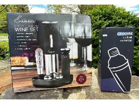 - Rabbit 8-Piece Electric Wine Set: Electric Corkscrew, Aerator/Pourer, Preserver & 2 Stoppers, Foil cutter, Drip Collar & Charging Base
