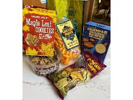 - Trader Joe's Bag of Goodies: Maple Leaf Cookies, Cheese Puffs, Cheddar Cheese Rocket Crackers, Plantain Chips and Way More Chocolate Chip Cookies