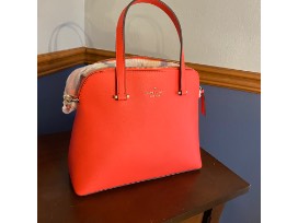 one zipper pocket, two slip pocketsKate Spade New York Maise Medium Dome Satchel in stoplight