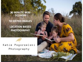 Enjoy a free mini-session with Katie Pogorzelski Photography. Location-based photography. This prize includes a 30 minute photo shoot with 10 edited images.