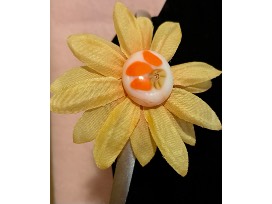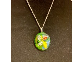 Enjoy all the colors of the rainbow with this Swirls of Color rimmed vase with base and handmade glass fusion necklace, headband, and barrette.