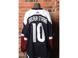 Jonas Johansson Colorado Avalanche "Boulder Strong" third jersey. Size 58G.
