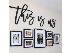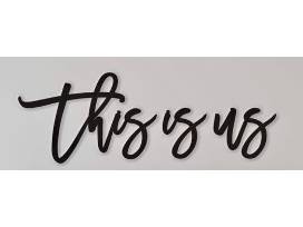 BLACK "THIS IS US" WOODEN WALL DECOR MEASURES 30" WIDE AND COMES IN 3 PIECES.