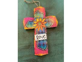 PINK LOVE & SUNFLOWER WOODEN CROSS