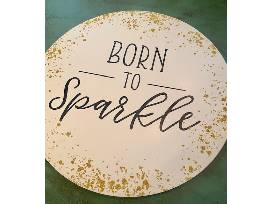 WHITE ROUND 12" WALL DECOR WITH GOLD SPARKLES (BORN TO SPARKLE)