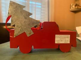 ADORABLE OLD RED TRUCK COUNTDOWN DECOR WITH RIBBON ATTACHED NUMBER BLOCKS