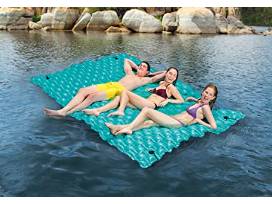 This floating mat keeps you right at the water surface, letting just enough water in to keep you cool! Features of this mat include, Intex connect 'N float connectors for use with other floats, measurements 114'' x 84'', folding for small storage.