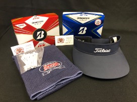 2 18 hole golf passes with carts at St. Anne's Golf Course. This package also includes a Titleist visor, tees, golf towel, Bridgestone XS golf balls and Bridgestone RX golf balls
