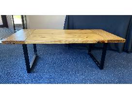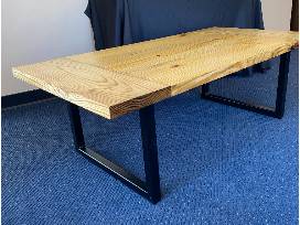 Check out this handcrafted wood coffee table from Brett Luker. It is solid pine with a natural finish and metal legs. Measures 26" x 48"