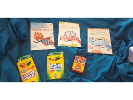 This includes 3 coloring books (superheroes, cars, and dinosaurs), colored pencils, washable markers, and crayons.