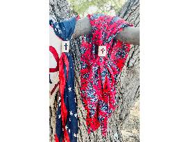 Custom, hand-made Scarf Slides made from Axis antler with wild rags.