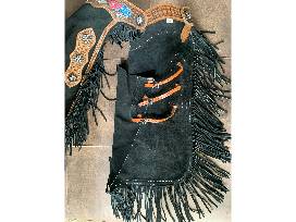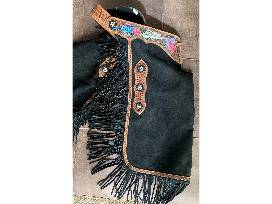 Black Suede Leather Western Horse Saddle Fancy Chinks