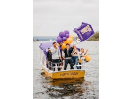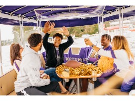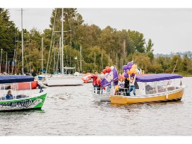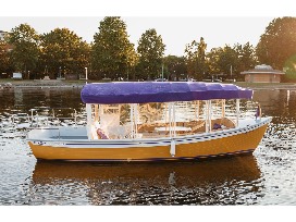 Enjoy a cruise on Duffy's signature 21' Sun Cruiser Duffy- Duff'n Dawgs at the Marina Park in Downtown Kirkland, WA.