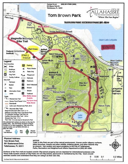 Parking is available throughout Tom Brown with a large area behind the Sand Volley Ball Courts. If you are entering from Capital Circle, please plan to arrive before 7:45 at the latest as they will begin block off Easterwood starting at the Weems Roundabout. If you should be running late, alternate park entrance from Connor will remain open and you can park throughout Tom Brown. At 8:00, Easterwood Rd. will be closed off starting at Access Road 6 (entrance to the playground and BMX park area).