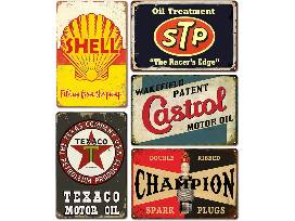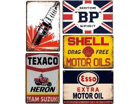 This package Includes 11- 8x12 inch tin signs: 10 oil and gas signs, and one vintage girl with horse and dogs sign. The rusty look is printed on it, not actual rust. The signs are anti-rust and waterproof. Each sign is made with folded edges to ensure safety and stability.