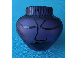 1Hand blown glass vase. Etched and sand blasted. Funny face collection. By G. Santana. Booth 330.