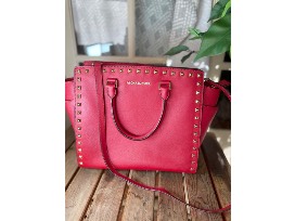 Michael Kors Red Selma Gold Stud Tote