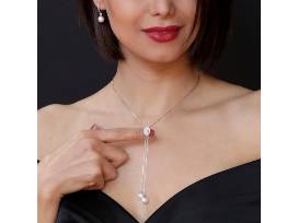 The necklace features a classy slider and the stylish earrings have lever backs!