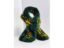 - Green and gold Rex Rabbit Knitted Fur Rosette Scarf