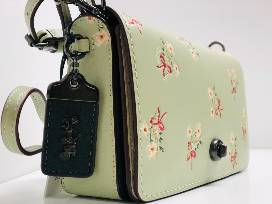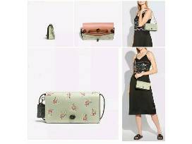Take home this beautiful COACH handbag from their Dinky collection! Easy, compact and practical-this perfect grab-and-go bag is crafted from COACH's polished pebble leather featuring an artistic brushstroke floral motif. A detachable strap allows you to wear it three ways: on the shoulder, crossbody or carried as a clutch.