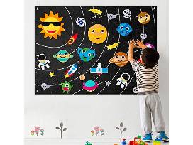 Complete with planets, asteroids, astronaut, alien, rocket ships, stars and more, your young astronaut will enjoy creating their own galaxy with this giant 3.5 feet solar system felt kit with 30 pieces.