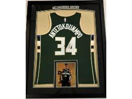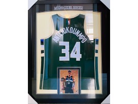 He helped the Milwaukee Bucks land their first NBA Championship since 1971. This signed Giannis Antetokounmpo jersey comes complete with a photo of the Greek Freak holding both the Championship and MVP trophy. It's all beautifully framed measuring 35" x 43-1/2"