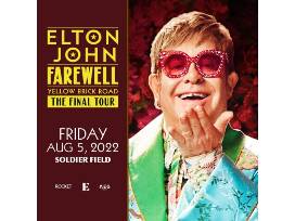 - (2) field-level tickets (Field R, Row 16) to Elton John's Farewell tour stop in Chicago at Soldier Field on August 5, 2022