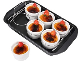 - Six ramekins with water bath baking pan Culinary butane torch