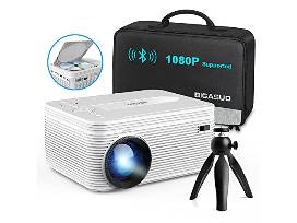 - BIGASUO Upgrade HD Bluetooth Projector Built in DVD Player, Mini Video Projector 1080P Supported Compatible with TV/HDMI/VGA/AV/USB/TF SD Card;